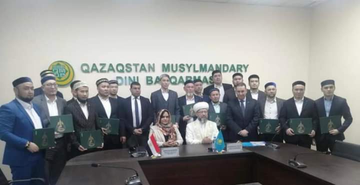 التقت منال يحيى الشناوى، سفيرة مصر لدى جمهورية كازاخستان ، مع نوريزباي أوتبينوف مدير الإدارة الدينية والمفتى العام لكازاخستان بمقر دار الإفتاء الكازاخية، حيث سلمت السفيرة شهادات إجتياز الدورة التدريبية التى أقامتها وزارة الأوقاف للأئمة والوعاظ الكازاخ.