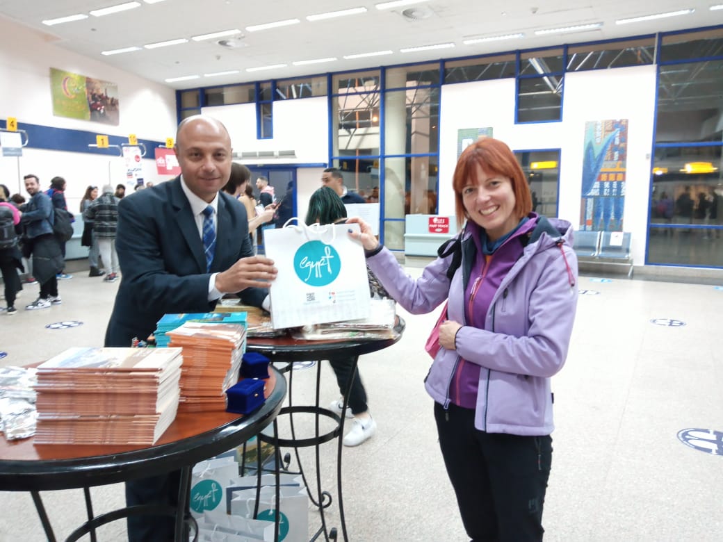 وقد قام السيد أحمد الدع المُشرف على مكتب الهيئة المصرية العامة للتنشيط السياحي بمحافظة البحر الأحمر، وبعض أعضاء المكتب باستقبال هذه الرحلة، حيث قاموا بالترحيب بالسائحين، وتقديم عدد من المواد والنشرات الترويجية باللغة الإيطالية عن المقاصد السياحية المصرية المختلفة، ومجموعة من الهدايا التذكارية بما يساهم في تعريفهم بالمقومات والمنتجات والأنماط السياحية المتنوعة للمقاصد المصرية.