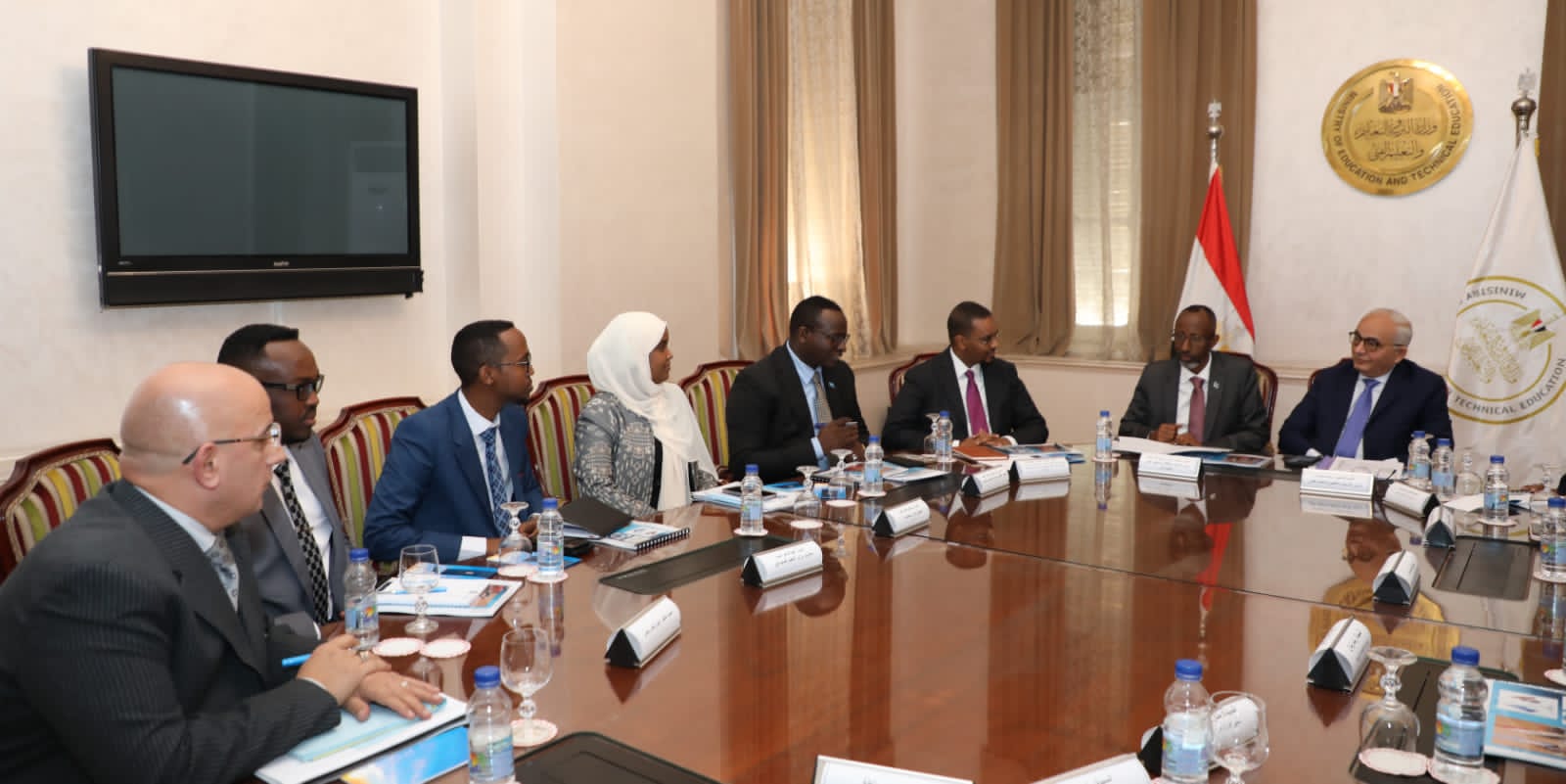 وقد حضر اللقاء من جانب وزارة التعليم الصومالية السفير إلياس شيخ عمر سفير فوق العادة ومفوض جمهورية الصومال الفيدرالية بالقاهرة، وإبراهيم محمد عمر طلحة الملحق الثقافي بسفارة الصومال، والمشتاق طاهر حسن المحلق الإداري بسفارة الصومال، وفهد طاهر أحمد سكرتير وزير التعليم الصومالى، ومن جانب وزارة التربية والتعليم والتعليم الفنى، الدكتورة شيرين حمدي مستشار الوزير للتطوير الإدارى والمشرف على الإدارة المركزية لشئون مكتب الوزير، والدكتور أكرم حسن رئيس الإدارة المركزية لتطوير المناهج، ونادية عبد الله رئيس الإدارة المركزية لشئون المعلمين، والدكتورة رباب زيدان مدير عام الإدارة العامة لشئون القيادات التربوية، ومنال مختار مدير إدارة الإعارات الخارجية، وراندا صلاح مدير إدارة العلاقات الثقافية والوافدين.