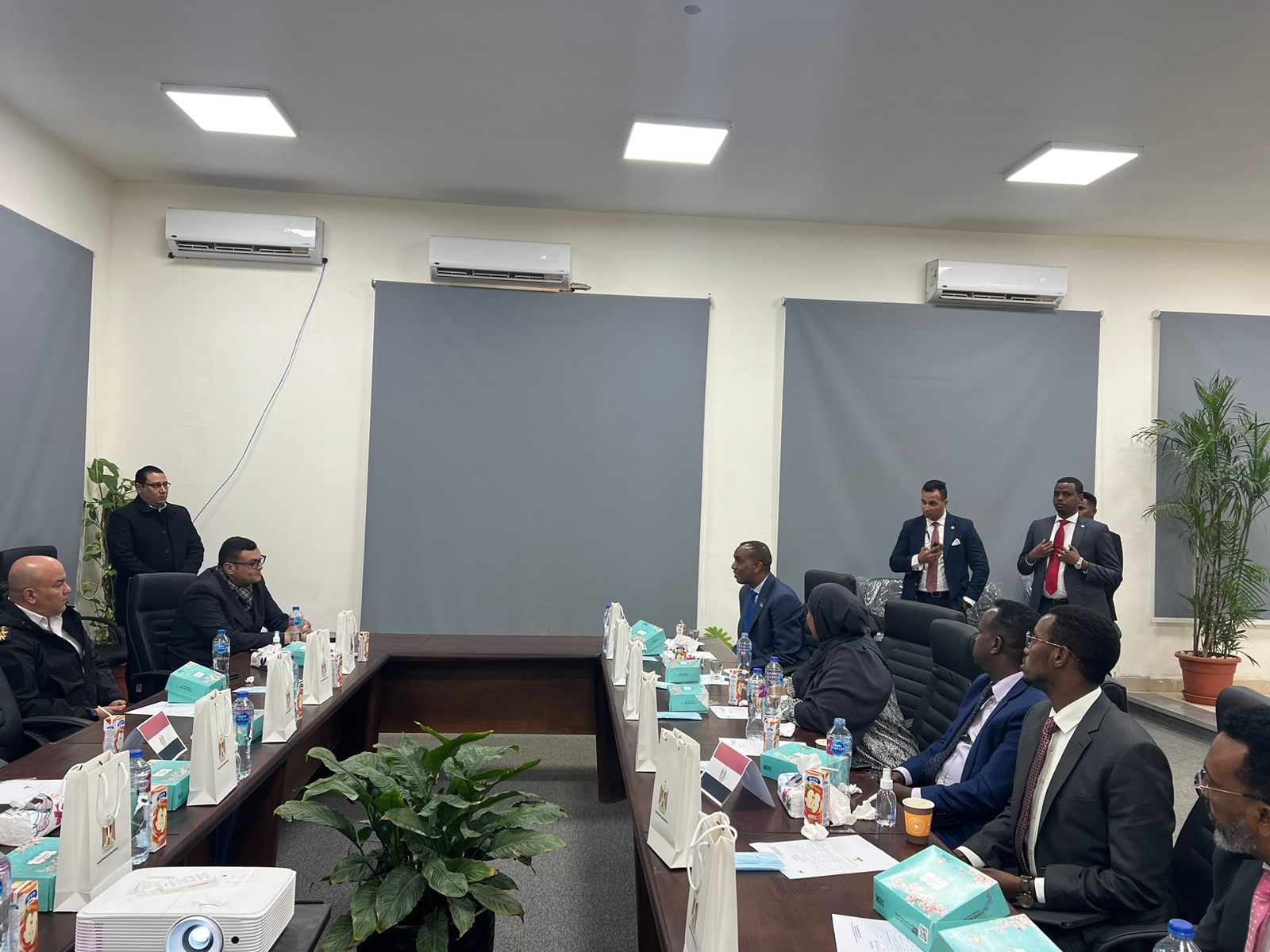 وبدأت زيارة الوفد الصومالي، باستقبال الوفد بمقر جهاز العاصمة الإدارية الجديدة، وتم تقديم عرض عن الموقف التنفيذي لمكونات العاصمة الإدارية الجديدة، وتوضيح اهم المعالم الرئيسية بها، كما تم استقبال بعض الاستفسارات والتساؤلات من الوفد الصومالي، وتم الرد عليها من المهندس شريف الشربيني، رئيس الجهاز.