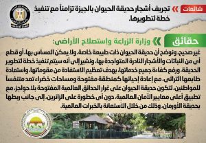 نفي المركز الاعلامي ما تداولته بعض المواقع الإلكترونية وصفحات التواصل الإجتماعي أنباء تزعم تجريف أشجار حديقة الحيوان بالجيزة تزامناً مع تنفيذ خطة لتطويرها،
