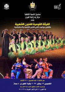 يقيم مركز إبداع قبة الغوري ” بشارع الأزهر ” ، التابع لقطاع صندوق التنمية الثقافية ، في الثامنة مساء اليوم الخميس 12 يناير الجاري ، حفل الفرقة القومية للفنون الشعبية والإستعراضية.