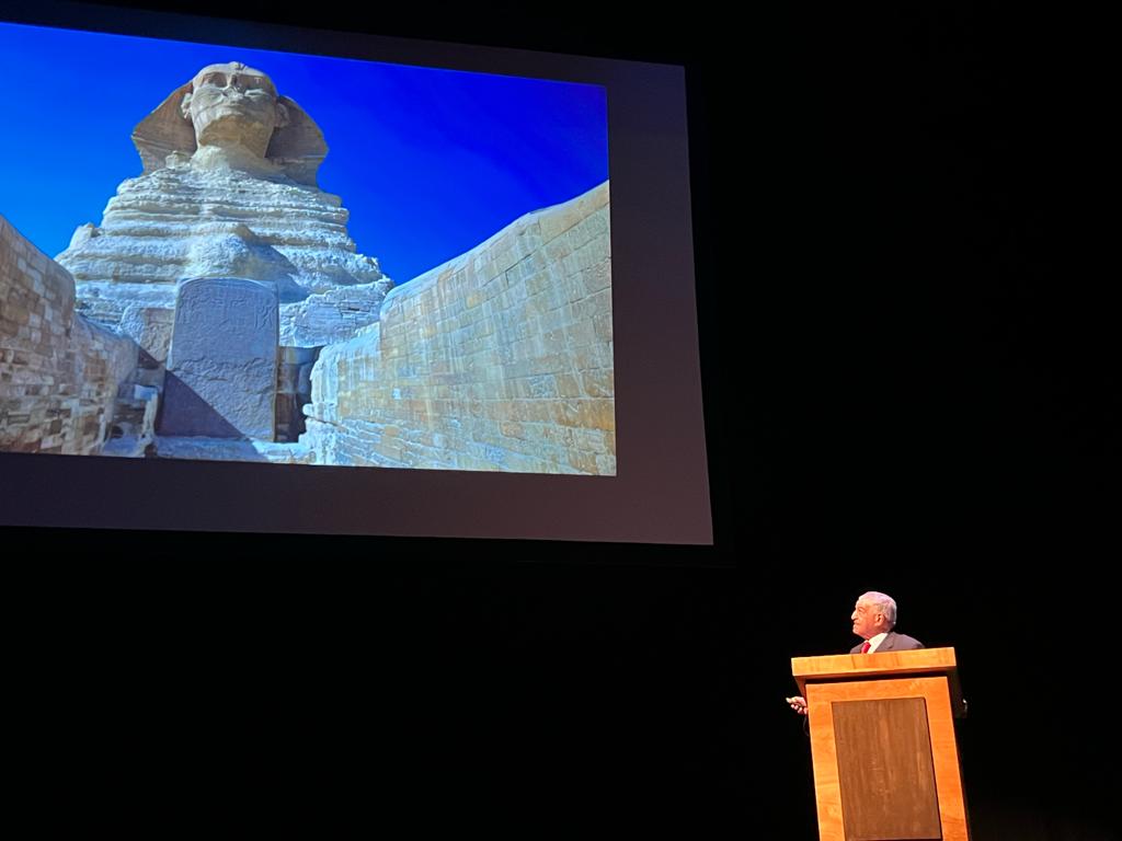 وأكد “حواس” أن مصر آمنه وهي البلد الوحيد التي أقيم فيها عرض لأكبر بيوت أزياء في العالم مثل ديور في الهرم وإستيفانوا ريتشي أمام معبد حتشبسوت بمدينة الأقصر، ودعي حواس الشعب الأمريكي لزيارة مصر. ووقع حواس الكتاب الخاص بمعرض رمسيس وذهب الفراعنة للحضور.