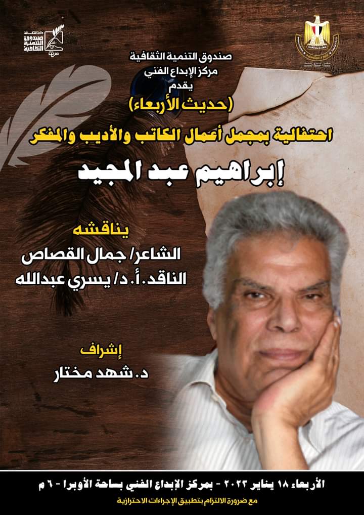 يحتفى المنتدى في أولى فعالياته بالكاتب الكبير إبراهيم عبد المجيد، وحديث عن مجمل أعماله، يحاوره الكاتب الصحفي والشاعر جمال القصاص، والناقد د. يسرى عبد الله.