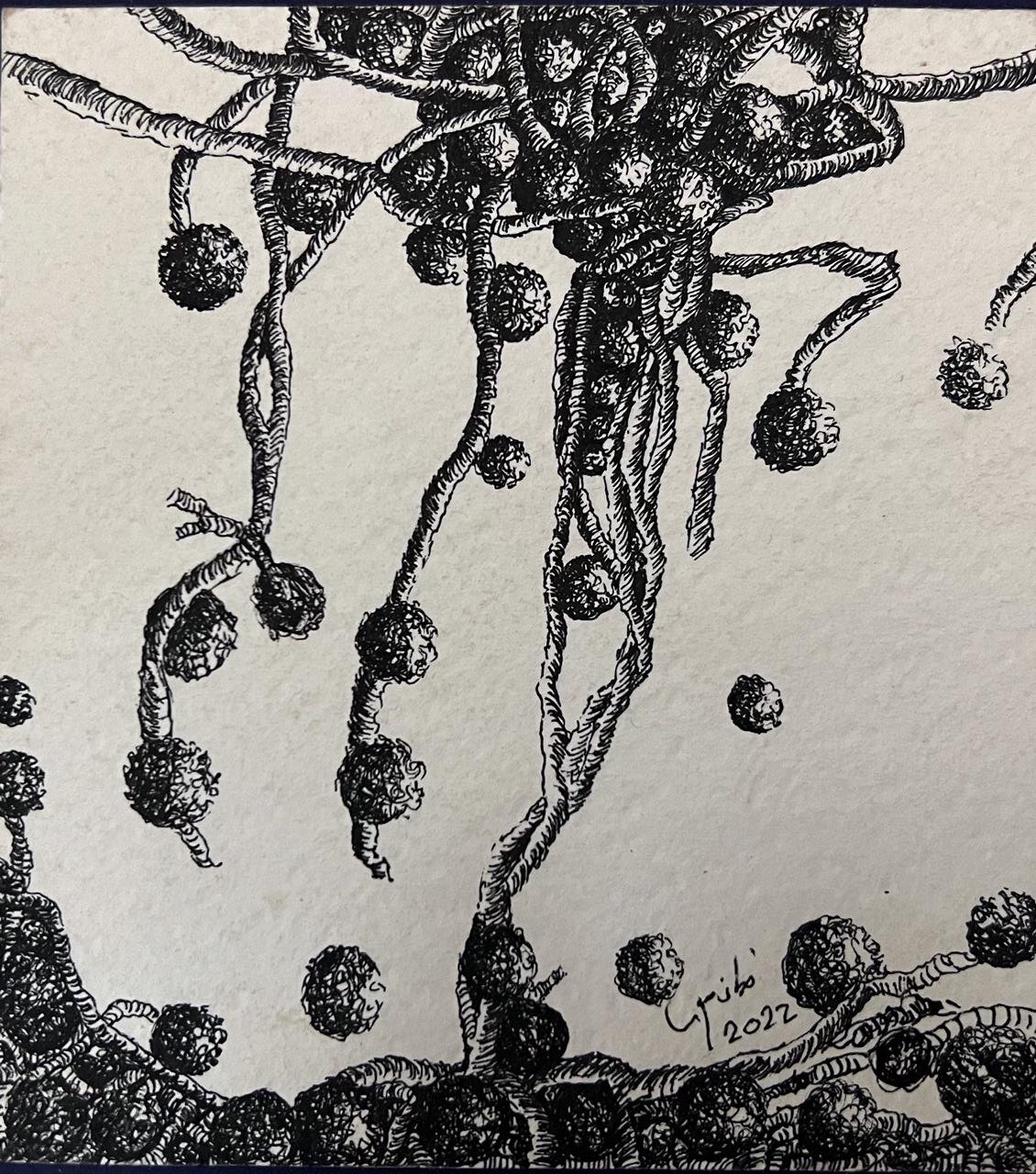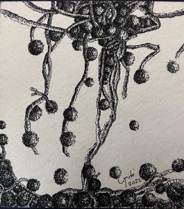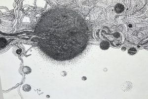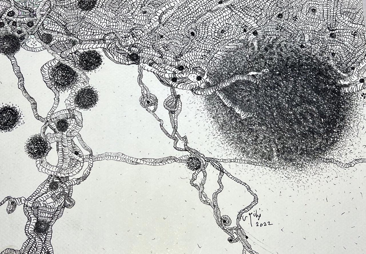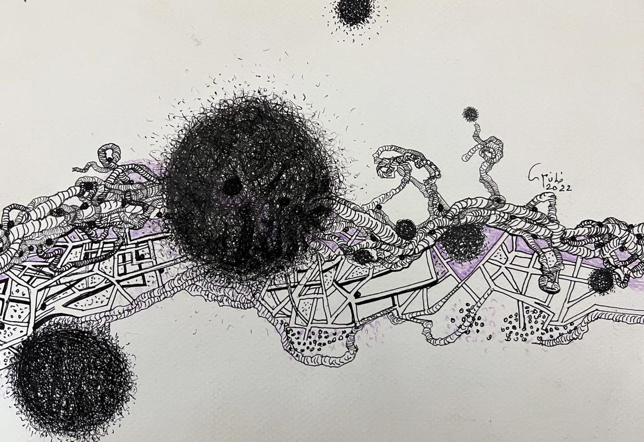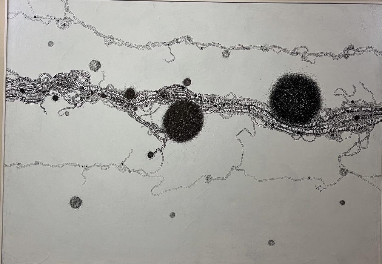 «خطين وبس» رسم بالحبر الأسود على ورق قطن وعلى التوالي مساحات مختلفة من 150×110 سم إلى 20×25 سم، وهو المعرض الخاص رقم 18 في مسيرة الفنانة ويعتمد على شغفها بالتجريب من خلال الخط الذي من خلاله يمكن صياغة حكايات كثيرة في الحياة والمشاعر ببساطة الخط وعمق دلالات الأبيض والأسود.