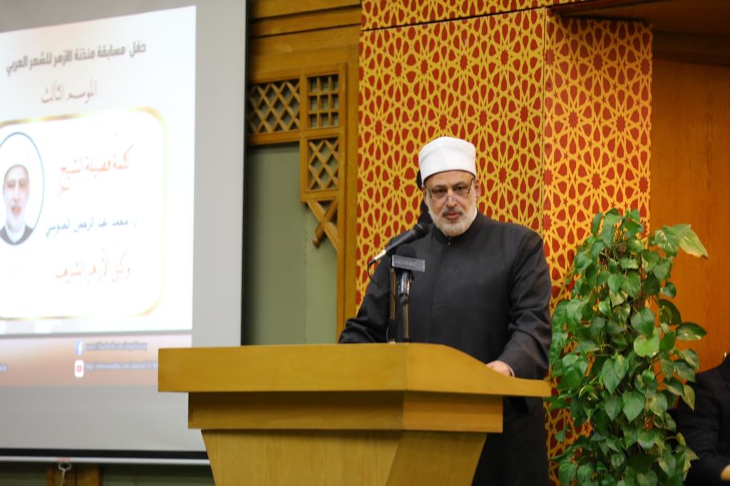 وأكد الدكتور الضويني، خلال كلمته اليوم الخميس، بحفل تكريم الطلاب الفائزين في مسابقة “مئذنة الأزهر” في الشعر، في موسمها الثالث، والتي نظمها مركز الأزهر لتطوير تعليم الطلاب الوافدين برئاسة الدكتورة نهلة الصعيدي، أن دور الأزهر الثابت كأحد أهم المؤسسات الدينية والمراكز العلمية في العالم؛ وهو الاهتمام بنشر الثقافة الإسلامية، وعلوم الشريعة الإسلامية واللغة العربية لجمهور المسلمين، سواء الناطقين بالعربية أو الناطقين بغيرها، فضلا عن حفظ التراث الإسلامي ودراسته ونشره، وحمل أمانة الرسالة الإسلامية إلى كل الشعوب، والعمل على إظهار حقيقة الإسلام وأثره في تقدم البشر ورقي الحضارة وكفالة الأمن والطمأنينة وراحة النفس للبشرية جمعاء.