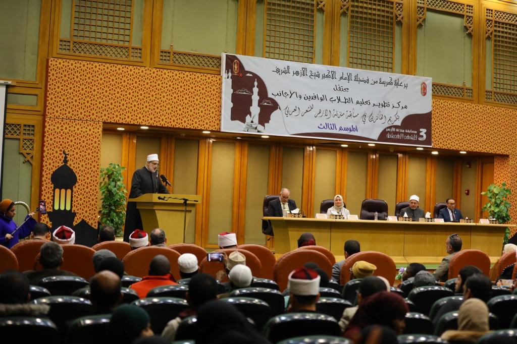 وأشار وكيل الأزهر أن الأزهر منذ إنشائه وحتى اليوم هو كعبة العلم الحصينة التي يؤمها أبناء المسلمين من أنحاء العالم، ويقصدونه بهدف تعلم اللغة العربية والعلوم الإسلامية، وتنظر إليه الدول الإسلامية نظرة إجلال وتكريم باعتباره منارة للإسلام، ومصدرًا أساسيًا لتعليم اللغة العربية، لغة القرآن، موضحا أن ارتباط المسلمين من الناطقين بغير العربية بهذه اللغة ارتباط ديني وعقدي؛ إذ أنهم في حاجة ماسة مع رغبة صادقة إلى معرفة جوانب الثقافة العربية الإسلامية كتلاوة القرآن الكريم، وفهم آياته، ومعرفة أسراره وأحكامه، فضلا عن معرفة الفكر الإسلامي المستنير، والجوانب المضيئة في الحضارة الإسلامية وتأثيرها في الحضارات العالمية.