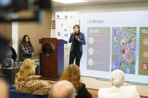 وتناولت شريف بالحديث مختبر الابتكار المستدام والذي يعد الأول من نوعه في الشرق الأوسط وأفريقيا؛ ويستهدف العمل على دعم وتطوير الابتكارات التي تأتي في إطار تحقيق أهداف التنمية المستدامة، ويساهم في إكمال الحلقة بين مخرجات مبادرة كن سفيراً والتي تهيئ الشباب لاستيعاب وتبني فكر أهداف التنمية المستدامة ثم تحويل هذه الأفكار إلى مشروعات مبتكرة تستهدف تحقيق تلك الأهداف. وكذلك تقديم الدعم الفني والتقني من خلال توفير معامل لتصنيع النماذج الأولية لتلك المشروعات ومساعدتها على اختبار هذه النماذج والتحقق منها باستخدام تكنولوجيا التصنيع.