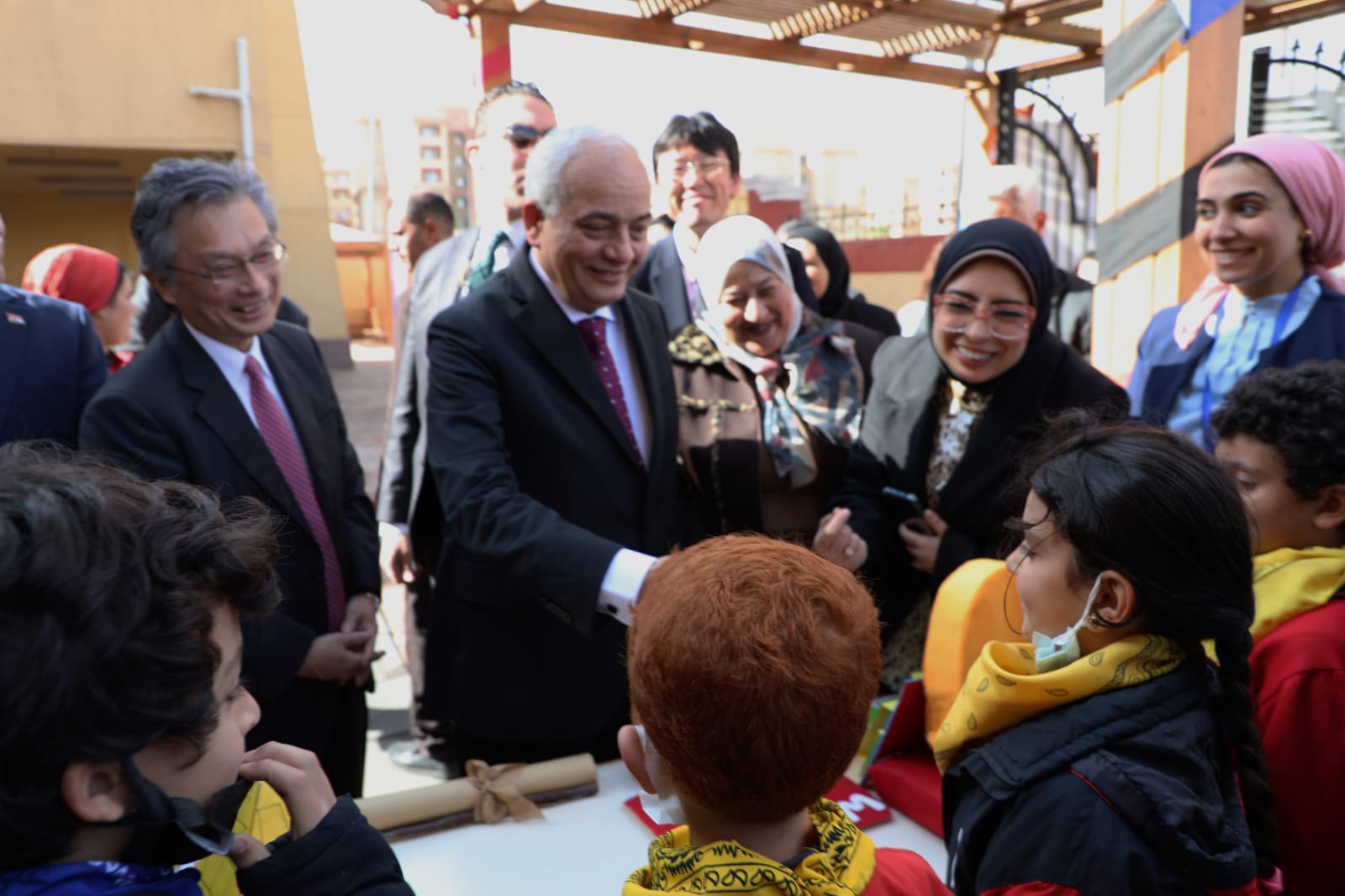 تفقد الدكتور رضا حجازي وزير التربية والتعليم والتعليم الفني والسفير أوكا هيروشي السفير الياباني في مصر والوفد المرافق له، سير العملية التعليمية داخل المدرسة المصرية اليابانية بزهراء مدينة نصر، بحضور ممثلي هيئة التعاون الدولي اليابانية في مصر (جايكا).