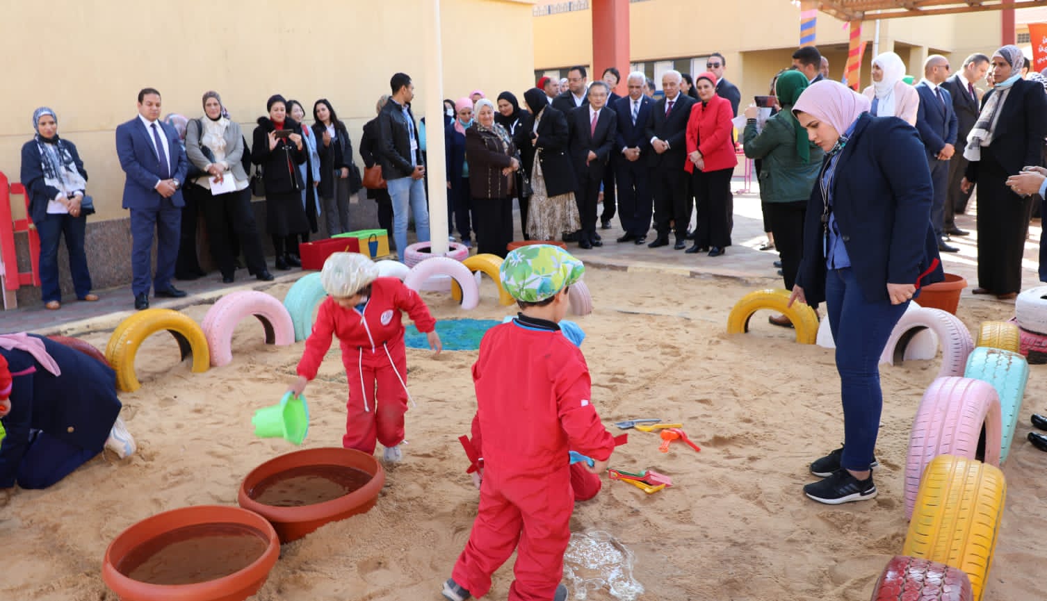 كما شهد الوزير حصة التعلم من خلال اللعب في حوض الرمال وهو أحد أهم أنشطة التوكاتسو كما قام الطلاب بعرض النشاط الرياضي، ومشاركة طلاب الدمج في هذه الأنشطة.