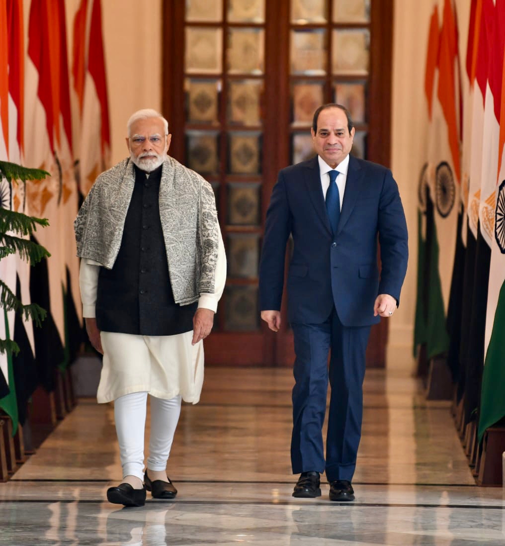 رحب خلالها رئيس الوزراء “مودي” الرئيس ضيفاً عزيزاً في الهند، معرباً عن تقدير بلاده الكبير للسيد الرئيس ولقيادته الحكيمة التى حافظت على الامن والاستقرار فى مصر عقب ما شهدته المنطقة من احداث فوضى وعنف خلال ما عرف بالربيع العربى، وكذلك للنهضة التنموية غير المسبوقة التي تشهدها مصر حالياً، وهو ما يجعل الهند قيادة وشعباً تتشرف بزيارة سيادته، كضيف شرف رفيع المستوى في احتفالية قيام الجمهورية الهندية موضحا ان تلك المشاركة تضيف طابع خاص ورونقاً لاحتفالات الهند.