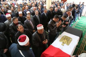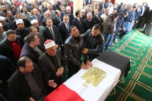 عقب أداء صلاة الجنازة على الجثمان بمسجد القرية جاء ذلك بحضور اللواء خالد عبد السلام مدير أمن كفر الشيخ واللواء معتز البهنساوي، رئيس فرع المخابرات العامة بكفر الشيخ اللواء تامر سعيد السكرتير العام للمحافظة وأعضاء مجلسي النواب والشيوخ والقيادات الشرطية بالمحافظة وعدد من القيادات الشعبية والتنفيذية بالمحافظة والآلاف من أهالي كفر الشيخ ، وأعرب محافظ كفر الشيخ عن حزنه لفقده ومقدما خالص التعازي لأسرة الشهيد ولمديرية أمن كفر الشيخ ووزارة الداخلية والنائب علي أبو أحمد عضو مجلس النواب في وفاة ابن شقيقه داعيا الله ان يتغمده بواسع رحمته ويسكنه فسيح جناته ويلهم ذويه الصبر والسلوان وداعياً المولى عزل وجل أن يحفظ مصر شعباً وجيشاً وقيادة .