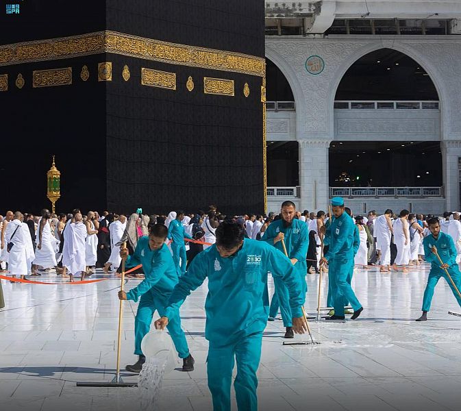 تقوم الرئاسة العامة لشؤون المسجد الحرام والمسجد النبوي بغسل وتطهير المسجد الحرام (10) مرات يوميًا، ويقوم بذلك (4) آلاف عامل وعامله، على مدار (٢٤) ساعة، وتتم عمليات الغسل داخل المسجد الحرام وسطحه وساحاته ومرافقه.
