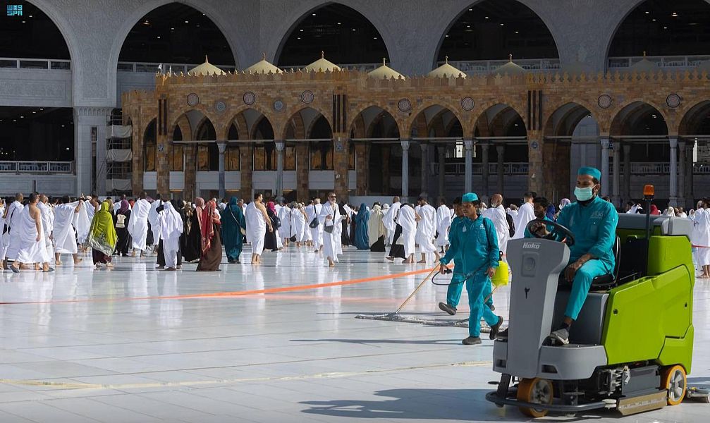 شؤون الحرمين: غسل صحن المطاف في 20 دقيقة وتطهير المسجد الحرام 10 مرات يوميًا