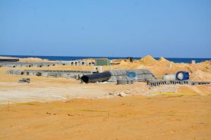 تفقد اللواء هشام آمنة وزير التنمية المحلية ، يرافقه اللواء خالد شعيب محافظ مطروح أعمال انشاء محطة تحلية مياه البحر ٤ بمنطقة الرميلة شرق مدينة مرسى مطروح والمخطط انشائها من خلال الهيئة الهندسية للقوات المسلحة ,بطاقة ٦٥ ألف م٣/ يوم كمرحلة أولي قابلة للزيادة مستقبلا إلى ١٣٠ الف م٣/يوم ، و تم تزويد المحطة ب ٢ خط مياه بحرى ومزود ب ٢٤ فلتر للمرحلة الاولى كما تم عمل ١١٢٠ خازوق حجري بعمق ٢٠ متر ، و تم توريد افزان للتثبيت سابقة التجهيز وتثبيت الخطوط بقاع البحر.
