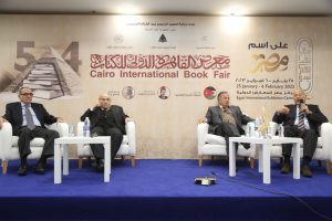 ضمن برنامج فعاليات البرنامج الثقافي للدورة الـ 54 لمعرض القاهرة الدولي للكتاب عقدت ندوة بعنوان “كتابات دبلوماسية” بالقاعة الدولية شارك فيها كل من السيد أحمد أبو الغيط أمين عام جامعة الدول العربية، السفير نبيل فهمي وزير الخارجية السابق، الدكتور مصطفى الفقي، والسفير محمد توفيق وأدارها السفير عمرو الجويلي.