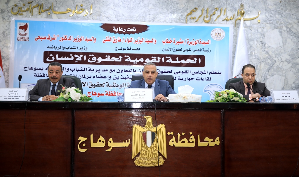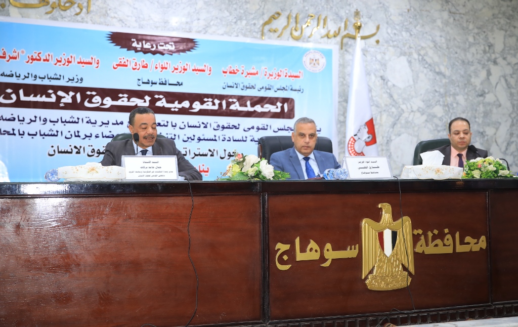 شهد اللواء طارق الفقي محافظ سوهاج، اليوم، فعاليات الندوة التي أقامها المجلس القومي لحقوق الإنسان، بالتعاون مع محافظة سوهاج، ووزارة الشباب والرياضة للتوعية والتعريف بالاستراتيجية الوطنية لحقوق الإنسان.