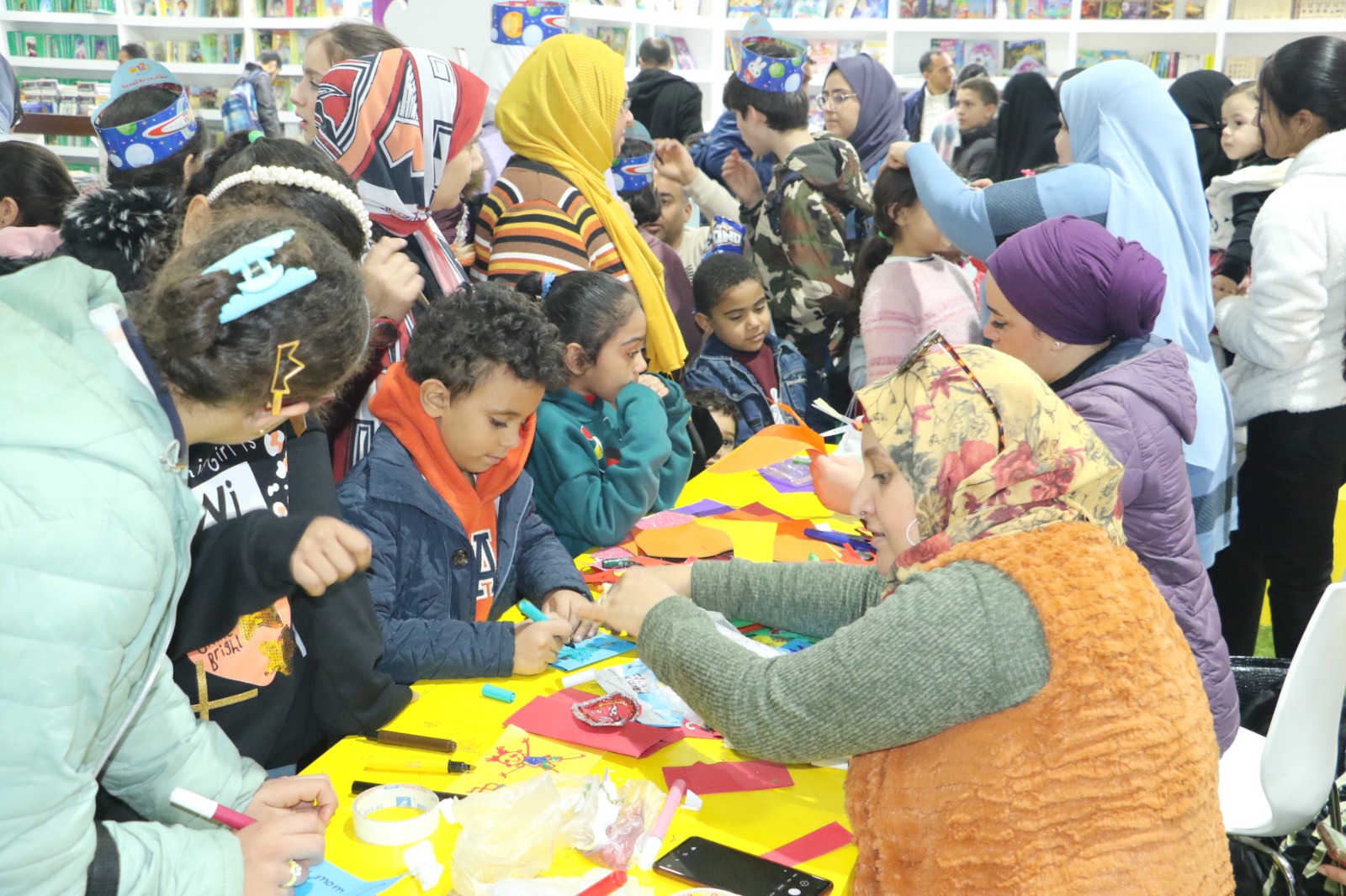 شهد اليوم السادس لمعرض القاهرة الدولي للكتاب في دورته 54 فعاليات ورش متنوعة للطفل ،قدمتها الهيئة العامة لقصور الثقافة برئاسة المخرج هشام عطوة، بقاعة كامل كيلاني.في نشاط المعلومات العامة والإبداع نفذت مطوية بعنوان “درة العمارة الإسلامية” على شكل مسجد، باستخدام ورق ناصيبيان وفوم جليتر.