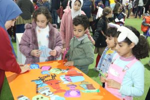 ومن بين الورش المقدمة ورشة تشكيل ورسم أقنعة مستوحاة من شخصيات أوبريت الليلة الكبيرة التي تم جمعها بتناغم وهارموني داخل لوحة جدارية من الورق تعكس شكلا محاكيا لحالة الأوبريت، إضافة إلى ورشة إعادة تدوير بعنوان “رسالة اليوم” وهي عبارات تشجيعية للطفل، بالإضافة إلى ورشة أشغال يدوية “حلي” من الخرز الملون وأشكال وجوه، وخيط صنارة، بجانب ورشة تصنيع فراشة متحركة بورق كانسون، وعصا خشب، وورشة رسم على الوجه، بجانب ورشة فنية بعنوان “كروت معايدة” باستخدام ورق كانسون وفوم جليتر، ورسم الأطفال بطاقات تعبر عن السنة الميلادية الجديدة.