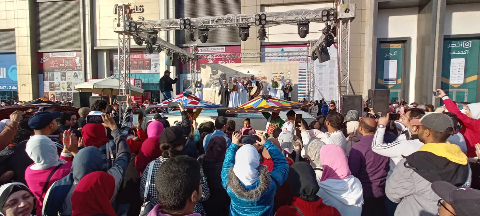 وشهد اليوم السبت، عاشر أيام المعرض، عرضا لفرقة التنورة التراثية قدمت به عددا من رقصاتها ومنها: “فاصل صعيدي، تنورة استعراضية” بقيادة محمد صلاح، كما قدمت فرقة الشلاتين التلقائية مجموعة من الاستعراضات المعبرة عن فلكلورها والفرقة من تدريب عوض الله الكرار.