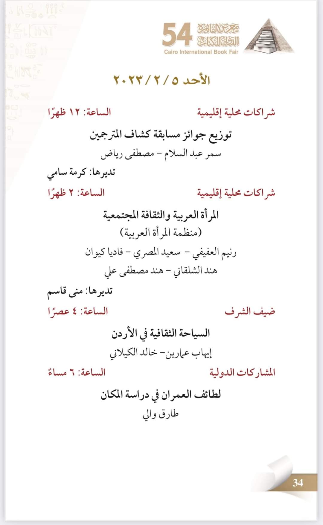 يشهد المعرض الدولى للكتاب اليوم ،عدد كبير من الندوات والمبادرات، وحفل التوقيع، وتقدم منظمة المرأة العربية ندوة عن المرأة والثقافة العربية يتحدث فيها دكتور سعيد المصرى،فاديا كيوان،وندوة السياحة الثقافية بالأردن ،يناقشها إيهاب عمارين وخالد الكيلانى.