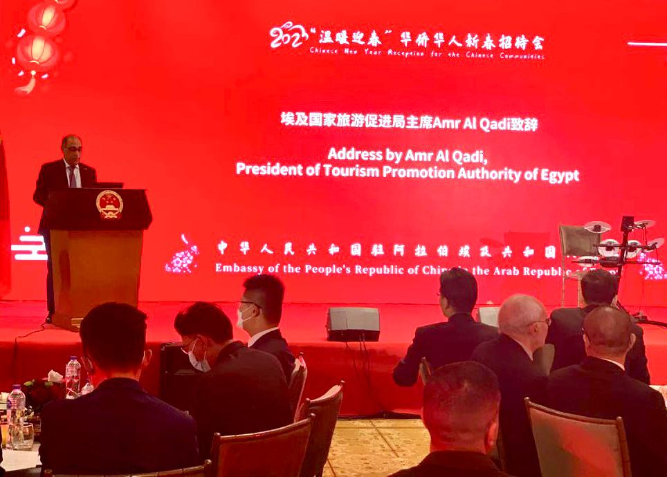 وخلال الاحتفال ألقى الرئيس التنفيذي للهيئة المصرية العامة للتنشيط السياحي كلمة أعرب خلالها عن تمنياته لجمهورية الصين الشعبية بعام سعيد وعن سعادته باستئناف الحركة السياحة الوافدة منها إلى مصر حيث استقبل مطار القاهرة الدولي أول فوج سياحي صيني في يناير الماضي منذ بداية جائحة فيروس كورونا، مؤكداً على جاهزية المقصد السياحي المصري لاستقبال كافة السائحين من مختلف دول العالم ومن بينهم السائحين الصينيين للاستمتاع بالمنتجات والأنماط والمقومات السياحية والأثرية التي يتمتع بها المقصد السياحي المصري من شمس مشرقة وشواطئ مشمسة وطبيعة خلابة بالإضافة إلى زيارة المتاحف والمواقع الأثرية للتعرف على الحضارة المصرية العريقة.