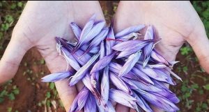 “ثم بدأنا في زراعتها واستقبال زهورها البنفسجية بكل حب في انتظار شعيرات الزعفران التي تطل منها ثم تجفف وتتحول إلى توابل ثمينة في القيمة الغذائية والتجميلية”.