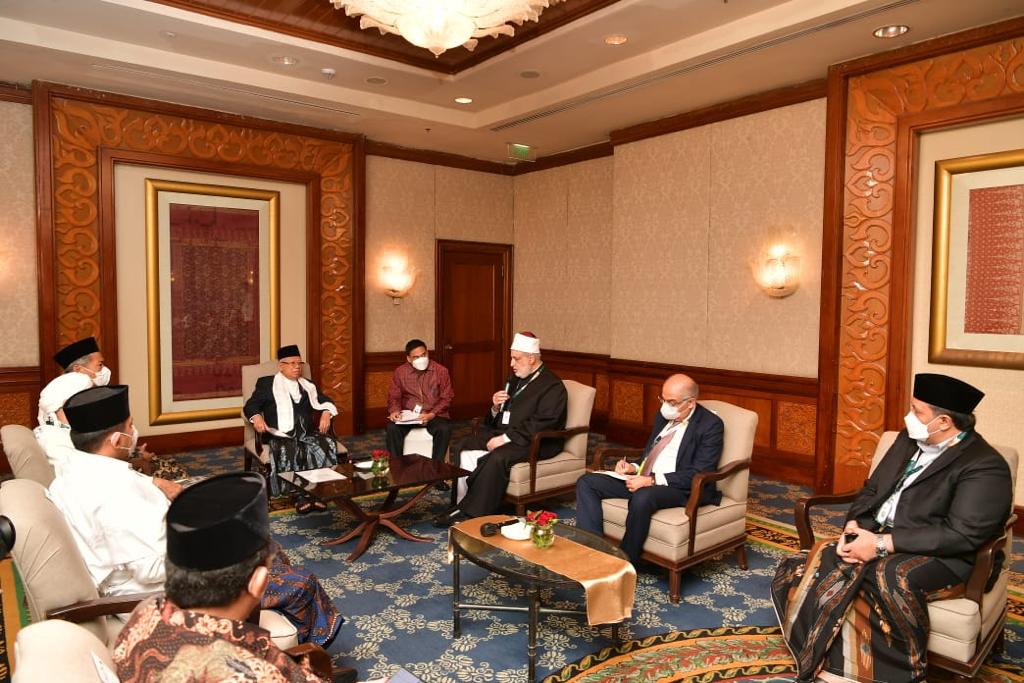 من جانبه، نقل وكيل الأزهر تحيات فضيلة الإمام الاكبر أ.د أحمد الطيب، شيخ الأزهر، إلى الرئيس الإندونيسي جوكو ويدودو، والشعب الإندونيسي، وتقدير فضيلته للعلاقة المتينة التي تجمع إندونيسيا بالأزهر، وما تقوم به إندونيسيا من جهود في دعم قضايا الأمة الإسلامية وحفظ التراث والاعتزاز بالهوية الإسلامية في وجه حملات الاغتراب والعولمة.