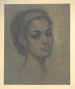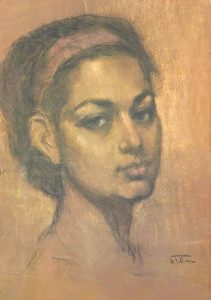 مني مجاهد….مخرجة الأفلام التسجيلية….هي حبيبة العمر وزوجة الفنان جمال كامل…هي ملهمته علي مر السنين…. هي الوجه الجميل الذي جلس مرارا وتكرارا ، دون شكوي ، امام فنان ليرسمها في كل اوقات اليوم. لم تكن هناك ساعات محددة أو مواعيد للرسم ، كلما شعر الفنان بالرغبة او الحنين الي الرسم ، أثناء وجوده بالمنزل ،كانت هناك مني مجاهد “الموديل”. لوحات منى مجاهد جاءت بألوان الزيت ..الباستيل.. والفحم
