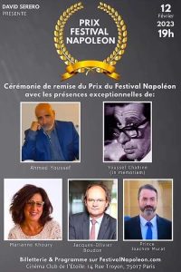 يكرم مهرجان نابليون السينمائى بباريس ،المخرج المصرى يوسف شاهين ، ليوسف شاهين ويعرض على هامش التكريم فيلم “الوداع يا بونابرت” الذي طرح بدور العرض عام 1985. الفيلم تدور أحداثه حول، حول احتلال قوات (نابليون) الإسكندرية عام 1798، حيث يلجأ الخباز (سليم) وزوجته وأولاده الثلاثة (الشيخ بكر) و(علي) و(يحيى) إلى القاهرة هربًا من الحملة، وتصل الحملة إلى القاهرة ويُهزم المماليك، يعمل (علي) مع الفرنسيين ويتعلم لغتهم، ويؤمن بالحوار معهم. أما (بكر) فيؤمن بضرورة العمل في المقاومة والمواجهة بالسلاح.