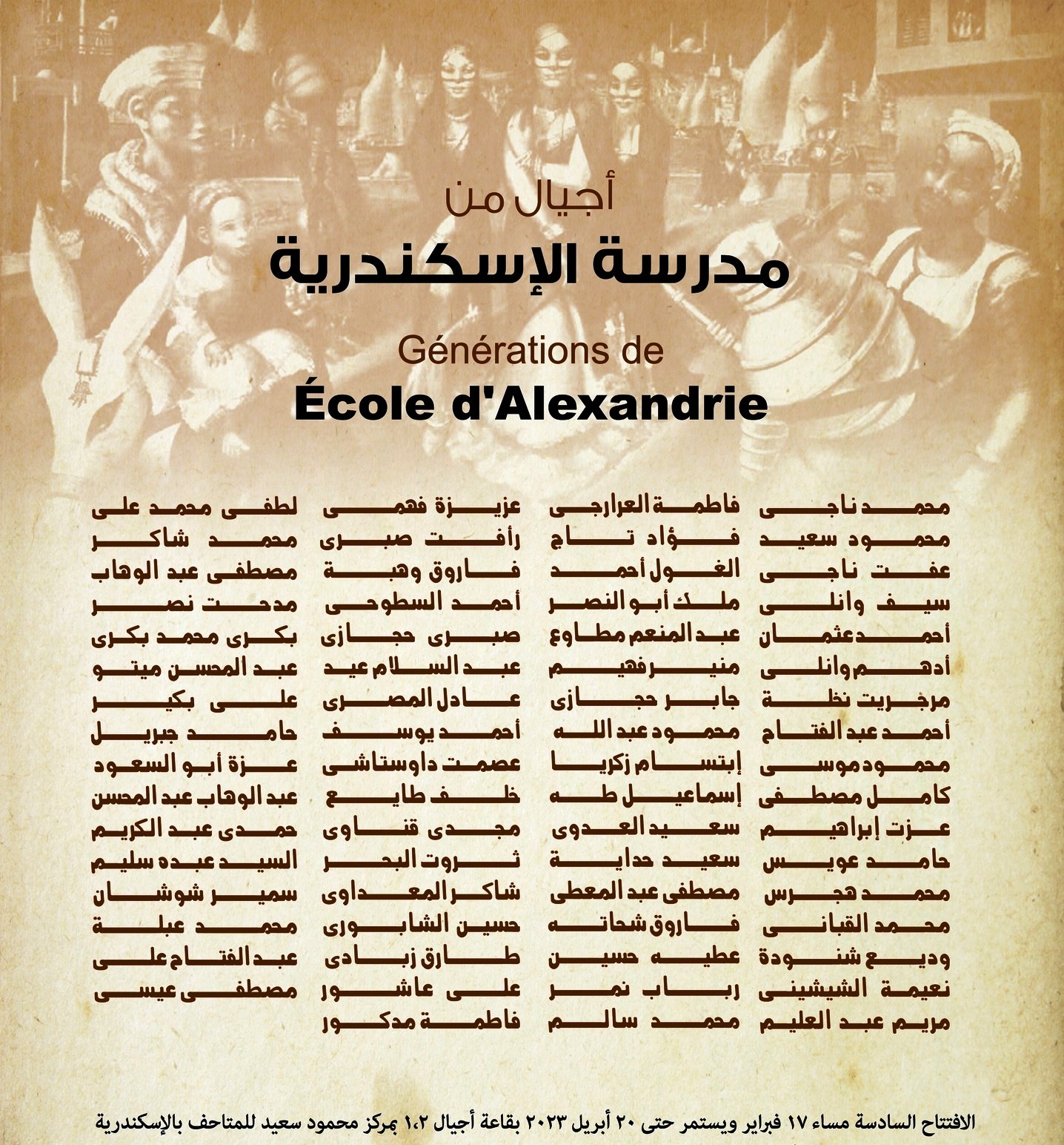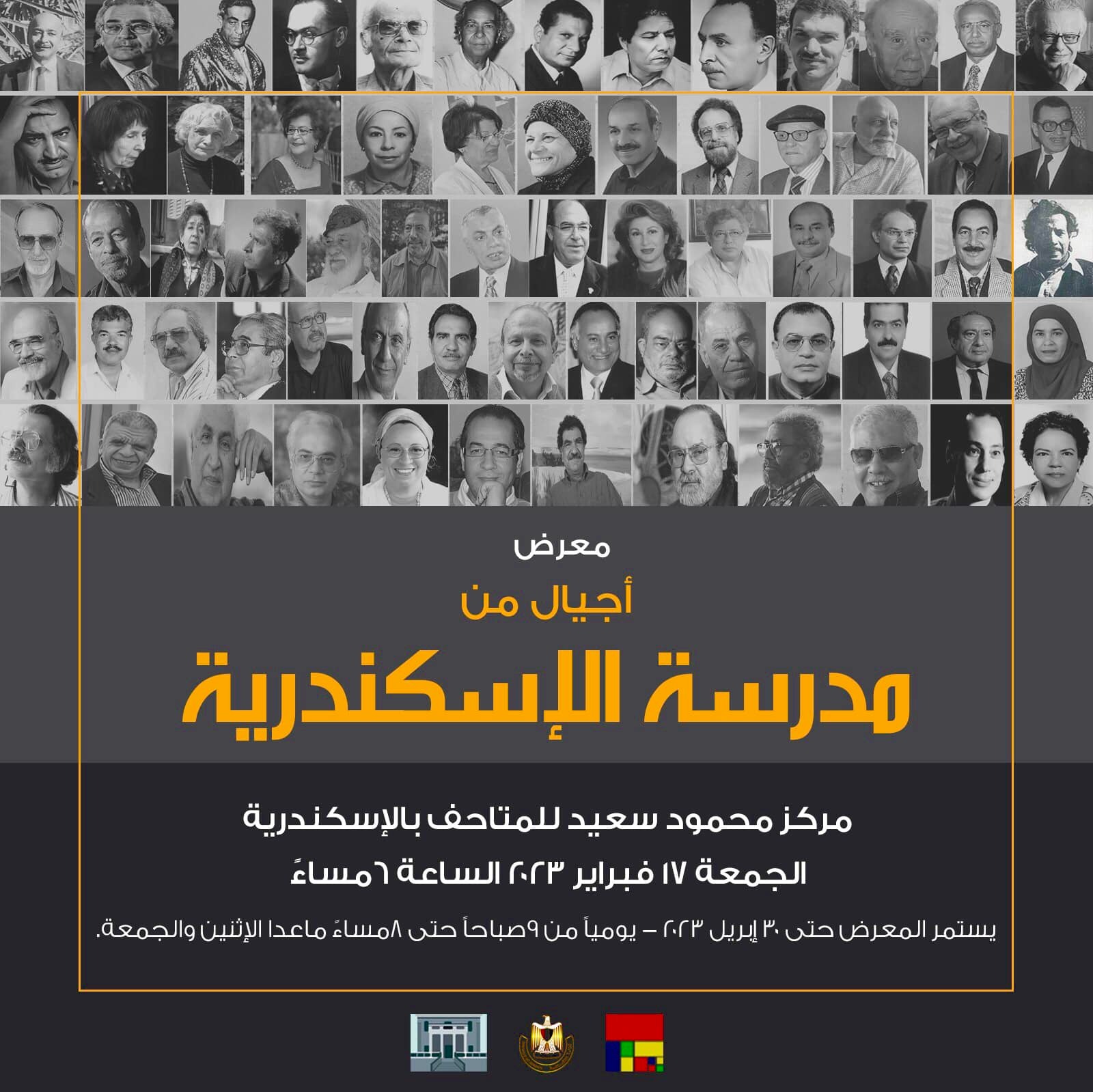 يفتتح الدكتور وليد قانوش رئيس قطاع الفنون التشكيلية معرض “أجيال من مدرسة الإسكندرية” فى السادسة مساء الجمعة 17 فبراير ، بقاعتي أجيال 1 ، 2 بمركز محمود سعيد للمتاحف، عرض بانورامي غير مسبوق يؤرخ لفن الإسكندرية على مدار أربعة عقود في إطار احتفالية المركز بمتحفَي الأخوين وانلي والفن المصري الحديث بالإسكندرية.