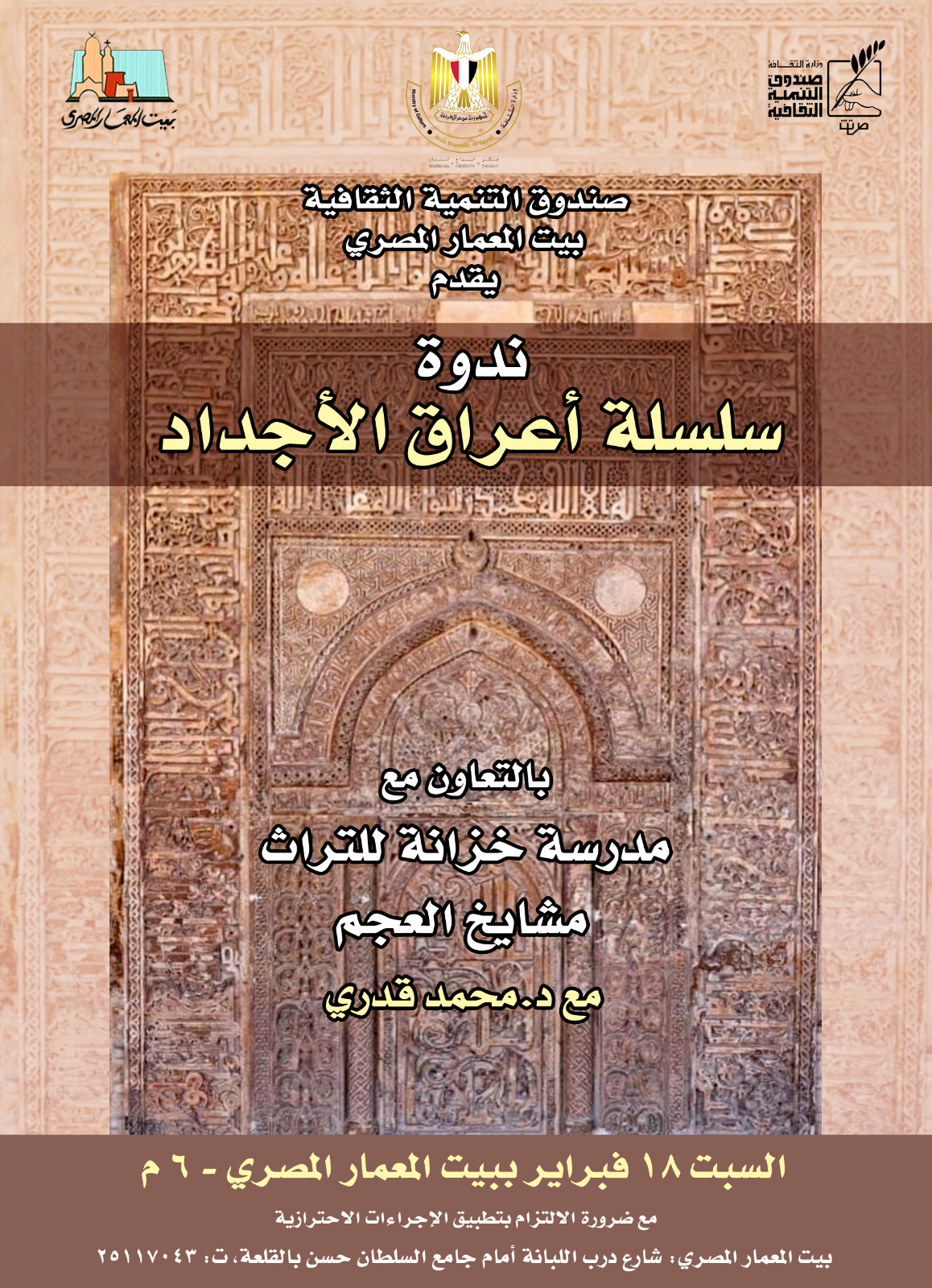 ينظم بيت المعمار المصري بدرب اللبانة التابع لقطاع صندوق التنمية الثقافية اللقاء الثاني من سلسلة “أعراق الأجداد” للدكتور محمد قدري، في السادسة مساء السبت 18 فبراير 2023 بالتعاون مع مدرسة خزانة للتراث.