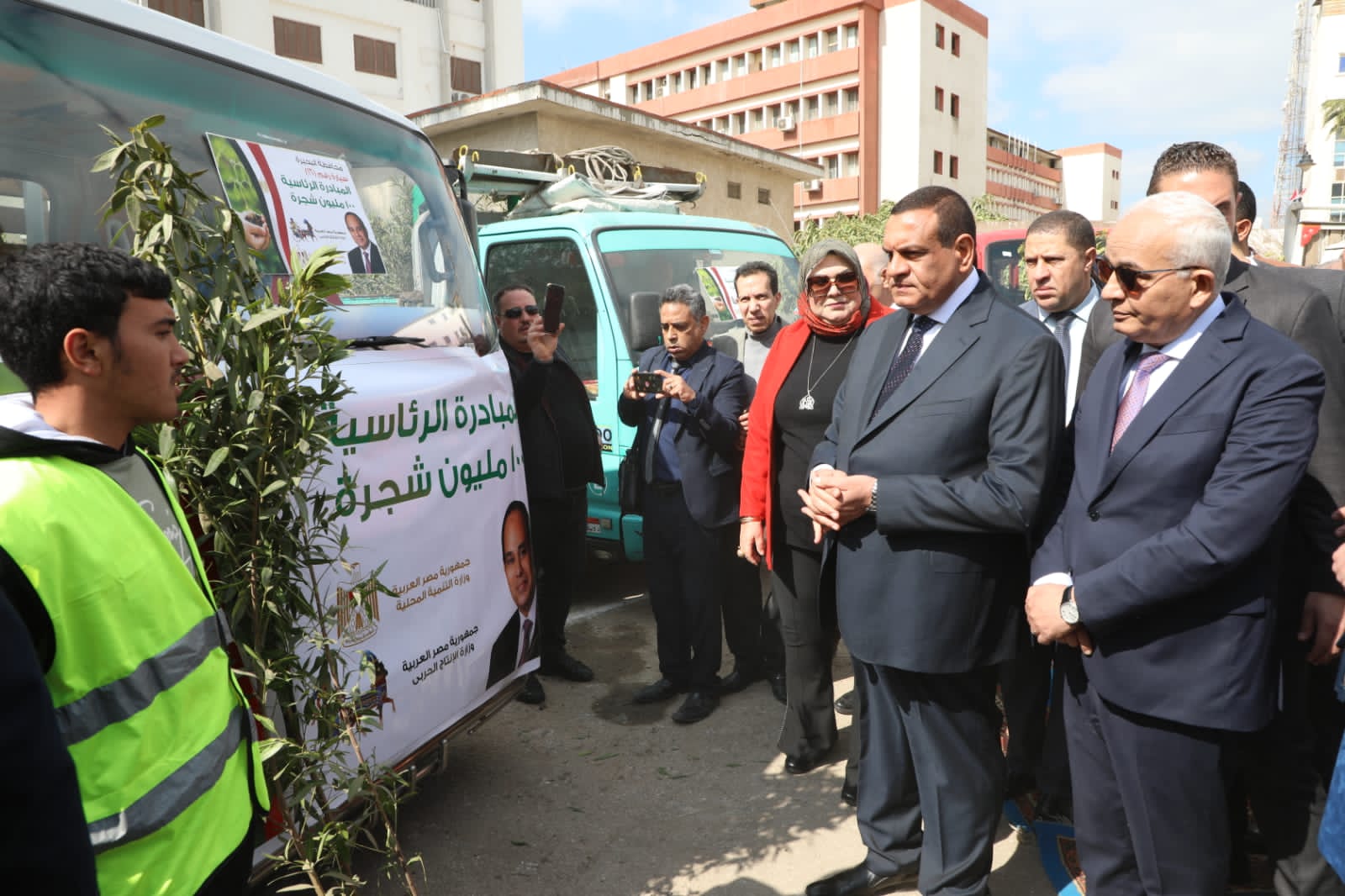 وعقب ذلك، دشن الوزيران مبادرة ١٠٠ مليون شجرة بالبحيرة، بزراعة عدد من الأشجار على كورنيش دمنهور، كما تفقدا اصطفاف سيارات الأشجار الخاصة بمجمع دمنهور الثقافي، حيث من المستهدف زراعة عدد 354 ألف شجرة بمحافظة البحيرة، في إطار حملة تشجير موسعة على جانبى الطرق السريعة بالمحافظة.