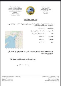 اعلن المعهد القومي للبحوث الفلكية والچيوفيزيقية، مرصد حلوان، تسجيل محطات الشبكة القومية لرصد الزلازل والتابعة للمعهد اليوم الإثنين الموافق 20/02/2023 هزة أرضية على بعد 552 كيلومترا شمال رفح، وسجل الزلزال بقوة 6.43 درجة على مقياس ريختر، مشيرا إلى أن الزلزال لم يسفر عن أي ضحايا أو مصابين.