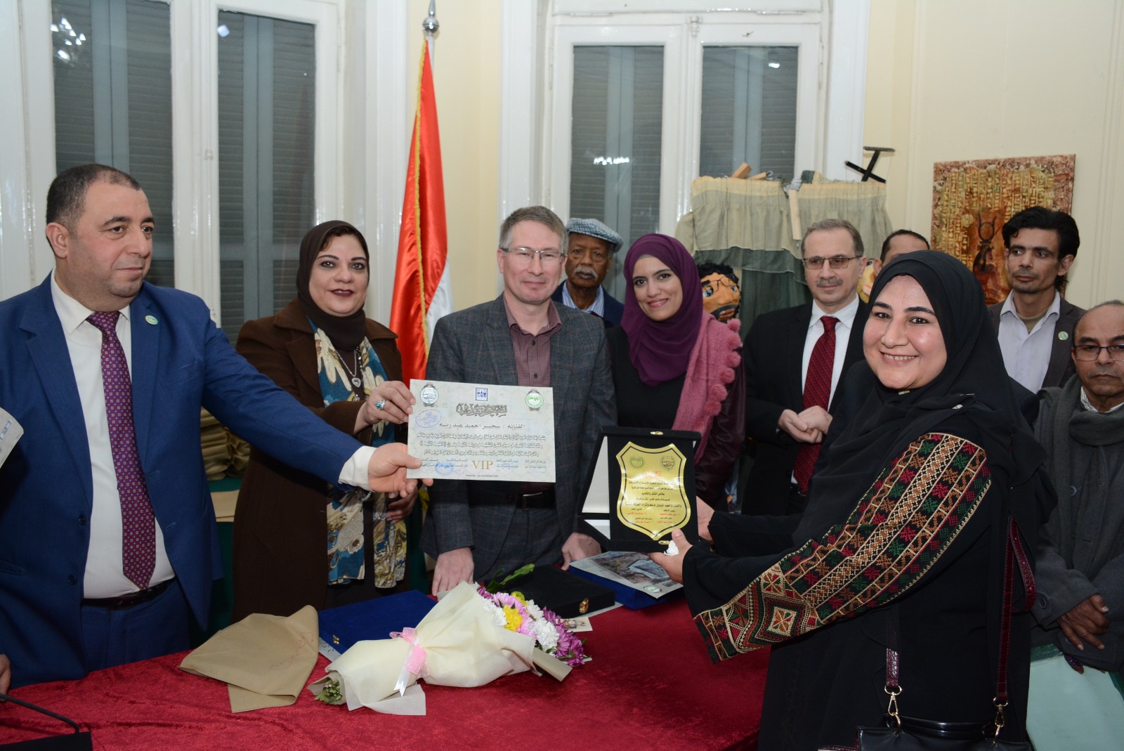 وفي الختام قام كلا من الوزير المفوض بجامعة الدول العربية د-حيدر الجبوري، و د-علي القُحيف رئيس اتحاد شباب العرب بتكريم مراد جاتين بدرع الاتحاد لجهوده في دعم نشاط اتحاد شباب العرب.