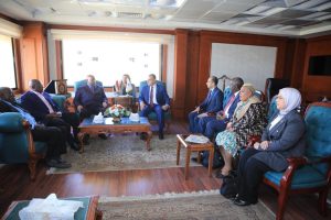 استقبل اللواء طارق الفقي محافظ سوهاج، اليوم، جايكوب موديندا رئيس برلمان دولة ” زيمبابوي” والوفد المرافق له، وذلك خلال زيارتهم للمحافظة في ضوء زيارة الوفد لمصر خلال الفترة من 13 وحتى 21 فبراير، بالتعاون مع مجلس النواب المصري؛ لدعم وتعزيز العلاقات الدولية، خاصة مع الدول الإفريقية، ورغبة الجانب الزيمبابوي في التعرف على تجربة المبادرة الرئاسية لتطوير الريف المصري “حياة كريمة”، والعمل على نقل التجربة الناجحة إلى دولة زيمبابوى، حضر اللقاء السيد أحمد سامي القاضي نائب المحافظ، وعدد من أعضاء مجلسي النواب والشيوخ عن محافظة سوهاج .