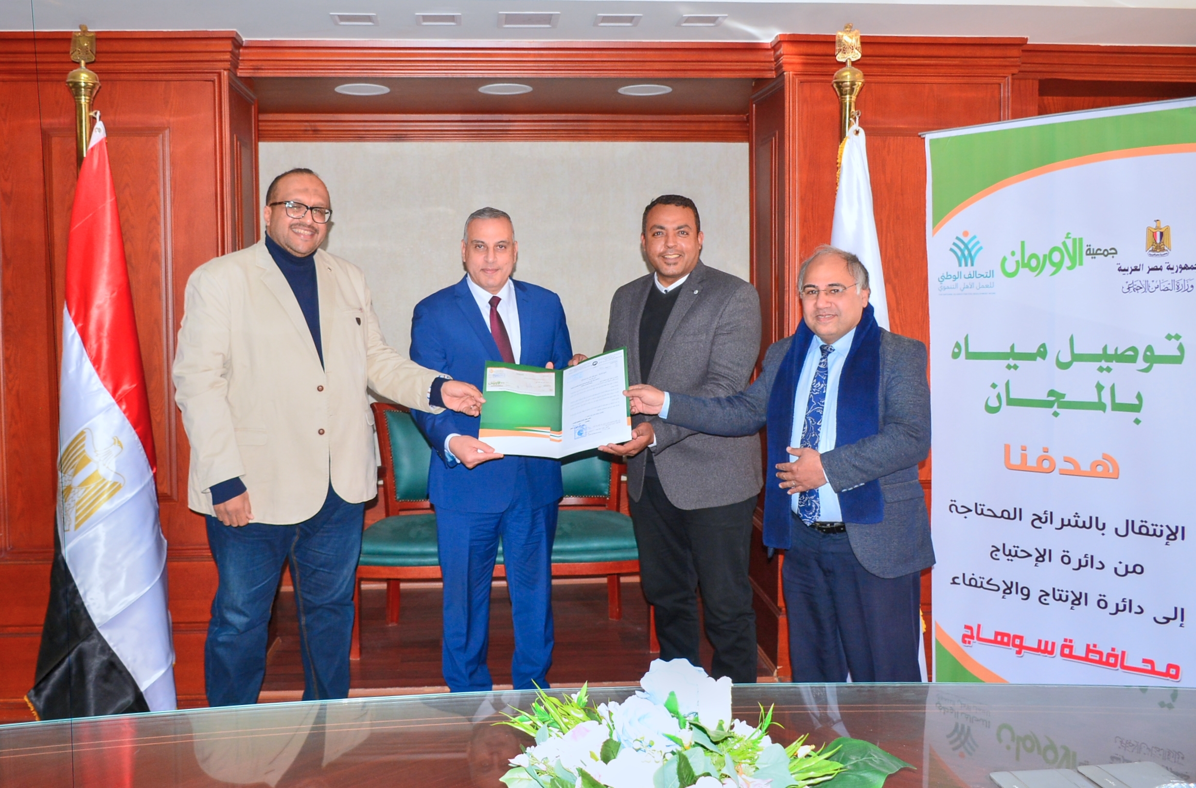 شهد اللواء طارق الفقي محافظ سوهاج، تسليم شيك الدفعة الثالثة بقيمة 8 مليون جنيه، مقدمة من جمعية الأورمان إلى شركة مياه الشرب والصرف الصحي بسوهاج، ضمن مبادرة ” سقيا الماء من جمعية الأورمان “، لتوصيل مياه الشرب النظيفة للأسر الأكثر احتياجا بنطاق المحافظة، بحضور المهندس محمد صلاح الدين رئيس شركة مياه الشرب والصرف الصحي بسوهاج، ورأفت السمان وكيل وزارة التضامن الاجتماعي، و يسري الشلقامي مدير جمعية الأورمان بسوهاج .