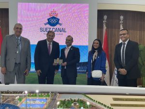 فاز جناح القرية الأولمبية لهيئة قناة السويس”SCOV” بجائزة “اكسر رقمك” لأفضل تصميم جناح بالمعرض الرياضي “2023 Sports Expo. خلال تفقدهم جناح SCOV” على هامش Sports Expo 2023 الذي تنظمه وزارة الشباب والرياضة لأول مرة تحت رعاية الرئيس عبدالفتاح السيسي رئيس الجمهورية تحت شعار “كسر رقمك ” في الفترة من 22 إلى 25 فبراير 2023 في مركز مصر للمعارض الدولية بالتجمع الخامس