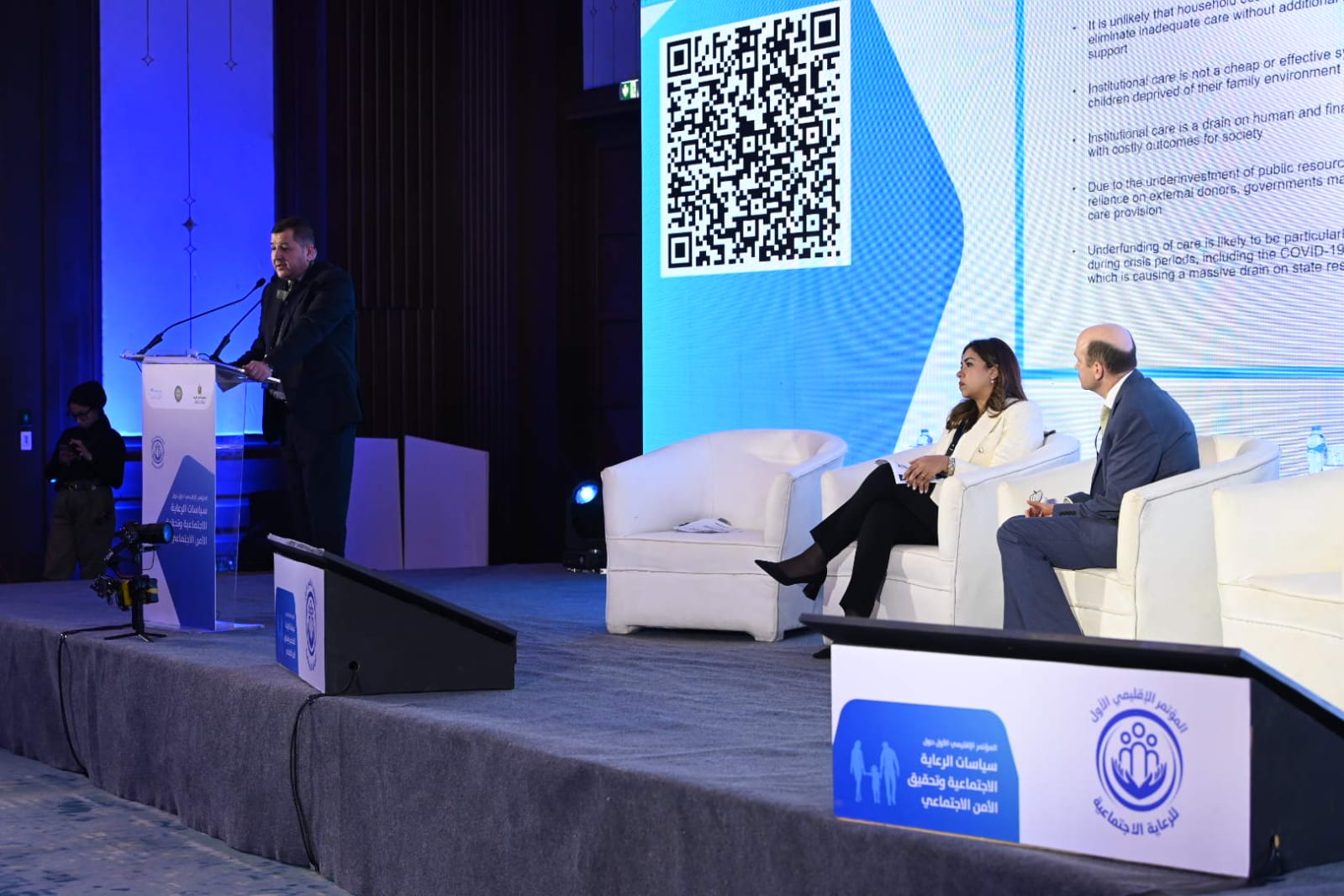 وكانت نيفين القباج وزيرة التضامن الاجتماعي قد افتتحت فعاليات المؤتمر أمس الأحد بحضور المستشار علاء الدين فؤاد وزير شئون المجالس النيابية، والدكتور رضا حجازي وزير التربية والتعليم بجمهورية مصر العربية، والسفيرة الدكتورة هيفاء أبو غزالة الأمين العام المساعد ورئيس قطاع الشئون الاجتماعية بجامعة الدول العربية، والدكتور هكتور الحجار وزير الشئون الاجتماعية بجمهورية لبنان الشقيقة، وأسامة بن أحمد خلف العصفور وزير التنمية الاجتماعية بمملكة البحرين الشقيقة، والدكتور عبد الله الوهيبي الوكيل الأول لوزارة الموارد البشرية والتنمية الاجتماعية بالمملكة العربية السعودية، والسيد جيرمى هوبكينز ممثل منظمة اليونيسف، وأعضاء من مجلسي النواب والشيوخ، والسادة ممثلي المنظمات الأجنبية ومؤسسات المجتمع المدني، ولفيف من الخبراء والشخصيات العامة المهتمة بمجال الرعاية الاجتماعية في المجتمع.