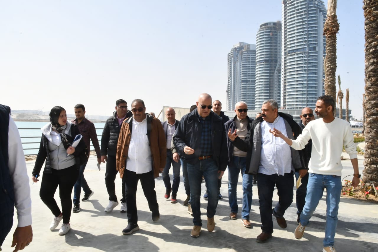 وزير الإسكان يتفقد سير العمل بمنطقة الأبراج الشاطئية بمدينة العلمين الجديدة