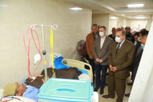 تفقد اللواء جمال نور الدين محافظ كفر الشيخ وعمرو البشبيشي نائب محافظ كفر الشيخ مستشفى قلين التخصصي ضمن مستشفيات المراكز الطبية المتخصصة للاطمئنان على الخدمات الطبية المقدمة للمواطنين متفقداً كل أقسام المستشفى والتقى بالمواطنين المترددين على المستشفى والمرضى واستمع لهم ووجه بسرعة الاستجابة لهم بحضور الدكتور بكر عادل مدير مستشفى قلين التخصصي واللواء خالد محمد كشك رئيس مركز ومدينة قلين. واطلع على مستندات كل قسم كل حدة وتابع موعد دخول المرضى وما تم صرفه من أدوية لهم وما تم من إجراءات طبية لإجراء عمليات جراحية أجريت لهم كما تفقد بنك دم تخزيني واطمأن على توافر الكميات الكافية. واستمع محافظ كفر الشيخ للمرضى بوحدة الغسيل الكلوي المكونة من 4 حجرات وتضم 34 ماكينة غسيل تستقبل 125 مريضا على شفتين يتلقى المريض الخدمات الطبية 3 مرات أسبوعيا ما بين نفقة دولة وتأمين صحي دون لن يتكلف المريض أي نفقات بالإضافة لماكينة للعزل واستمع محافظ كفر الشيخ لعدد من المرضى موجهاً باستمرار صرف الأدوية للمرضى بغض النظر عن موعد تجديد القرارات لحين وصولها حفاظا على حياة المرضى في كافة الاقسام. وأشاد المرضى بجودة الخدمات الطبية المقدمة لهم من المستشفى وحرص المسئولين بها على استمرار تلقيهم للجلسات بغض النظر عن ورود أو تأخير القرارات.