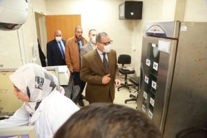 كما تفقد محافظ كفر الشيخ صيدليات ومخازن الادوية واطمأن على توفير الأدوية واطلع على سجلات المستشفى من الصادر والمنصرف من الادوية كما تفقد عناية الأطفال وما تضمه من 14 حضانا ونسبة الإشغال وصلت 91% خلال شهر، كما تفقد العنايات المركزة والتي تضم 9 أسرة بنسبة تشغيل 97%، خلال شهر واطمأن على صحة المرض واطلع على سجلات إجراء العمليات وما تم صرفه من الأدوية لهم وناقش المرضى فيما صرف لهم من أدوية. كما اطمأن على تشغيل العيادات في الفترة المسائية التي بدأت العمل من شهر نوفمبر الماضي متفقداً قسم الجراحة العامة وجراحات العظام وجراحات الأنف والأذن وقسم النساء والولادة كما اطمأن محافظ كفر الشيخ على شبكة الغاز، بتوفير تنك يتسع ل 7 لتر اضافة لتوافر اسطوانات الاكسجين وعددها 118 اسطوانة واطمأن على توفير الكميات الكافية والاحتياطية. كما تفقد محافظ كفر الشيخ قسم الاستقبال والطوارئ بسعة 16 سرير منهم 3 أسرة للعناية و3 أسرة للفرز و6 أسرة للملاحظة الحريمي و 4 أسرة للملاحظة الرجالي اضافة لغرفة الجبس وغرفة الغرز الجراحية كما تفقد قسم الاشعة سواء المقطعية وأشعة عادية ، وتلفزيونية و تفقد محافظ كفر الشيخ المخزن الرئيسي للأدوية إضافة للصيدليات بالمستشفى واطمأن على توفير الأدوية.