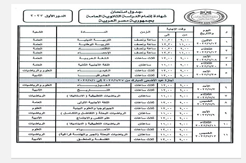 اعتمد الدكتور رضا حجازي وزير التربية والتعليم، جدول امتحانات الدور الأول لامتحانات الثانوية العامة للعام الدراسي الحالي 2022-2023.