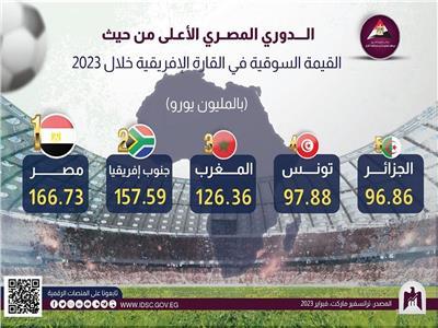 وقال المركز عبر صفحته، الدوري المصري سعد الأعلى من حيث القيمة السوقية في القارة الإفريقية، وذلك بنحو 166.73 مليون يورو، بينما جاء في المرتبة الثانية الدوري الجنوب إفريقي بنحو 157.59 مليون يورو.
