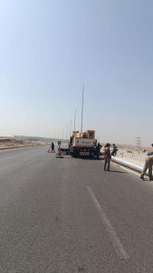 كما وجه المهندس أحمد على، بسرعة الانتهاء من أعمال الإنارة بطريق R1 الواصل بين الطريق الدائري الأوسطى والطريق الإقليمى، وكذلك طريق R5 المؤدى إلى الحي الـ14، وذلك في إطار الخطة المتكاملة الجاري تنفيذها لإنارة المحاور والطرق الرئيسية بالمدينة، حيث يجري تركيب أعمدة الإنارة بالطريقين.