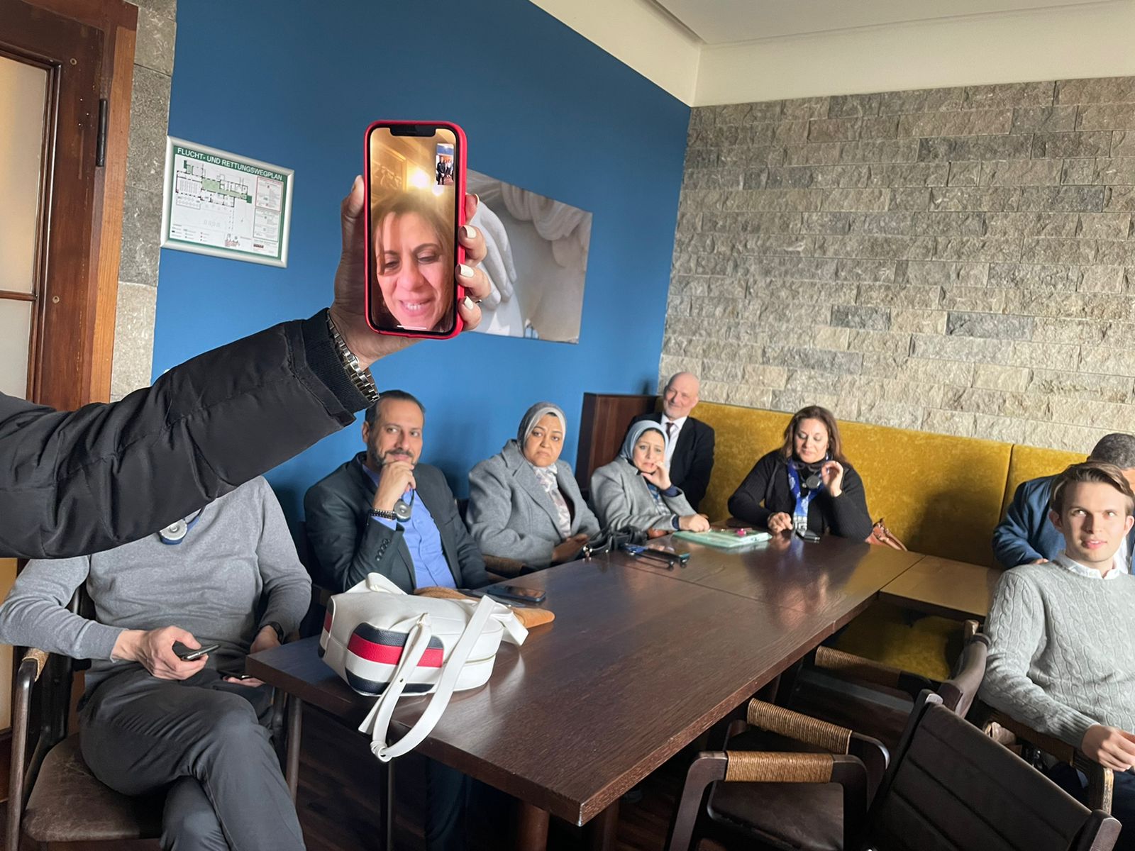 وفي سياق الزيارة، حرصت السفيرة سها جندي، وزيرة الدولة للهجرة وشئون المصريين بالخارج، على عقد لقاء افتراضي عبر الفيديو كونفرانس مع الشابين بمقر عملهما، وبمشاركة مانفريد ماي، مالك الفندق، وقد عبرت سيادتها عن فخرها بالشابين المصريين وأشادت بقدراتهما المميزة وأخلاقهما الرفيعة وانضباطهما في التدريب، كما تبادلت سيادتها الحديث مع مالك الفندق وأثنت على الجانب الألماني فيما يخص جهود التدريب والتعاون، فيما أعرب هو عن سعادته بأداء الشابين.