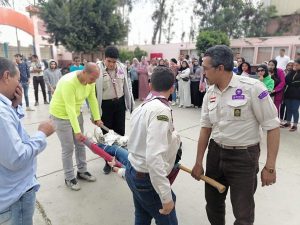 ايضا تم الشرح للطلبه والطالبات كيفيه تقديم الدعم النفسى واللوجستى للمصابين وتدريبهم على القيام بكافه اشكال الاسعافات الاوليه