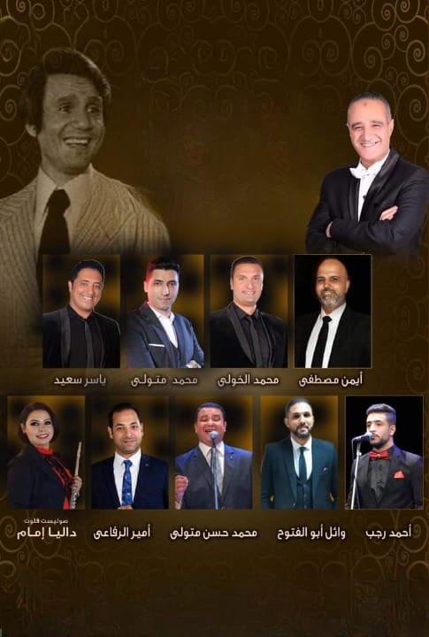 يتضمن البرنامج مختارات من أهم أعمال العندليب الاسمر الخالدة، منها: «كنت فين، على حسب وداد، حبيببها، رسالة من تحت الماء، لست قلبى، قارئة الفنجان، يا مالكا قلبى، فاتت جنبنا»، أداء أيمن مصطفى، محمد الخولى، محمد متولى، ياسر سعيد، أحمد رجب، وائل أبوالفتوح، محمد حسن متولى، أمير الرفاعى، وعازفة الفلوت داليا إمام.