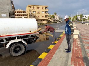 تابع هيثم عطية، رئيس مدينة مصيف بلطيم، عمليات سحب مياه الأمطار بجميع مناطق المدينة والمداخل والكورنيش، والانتهاء من سحب كافة مياه الأمطار من جميع مناطق المدينة، والتأكيد عل استمرار تشغيل محطات الصرف الصحي، لسحب المياه من البيارات ،وصفايات المطر، والتنبيه على استمرار العمل علي مدار اليوم، والاستعداد والجاهزية لأي طوارئ قد تحدث .