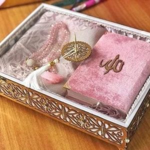 يمكن شراء صندوق ملون وإضافة المصحف الشريف ملون بألوان الباستيل مع سبحة ومصلية ويمكن إضافة فانوس صغير